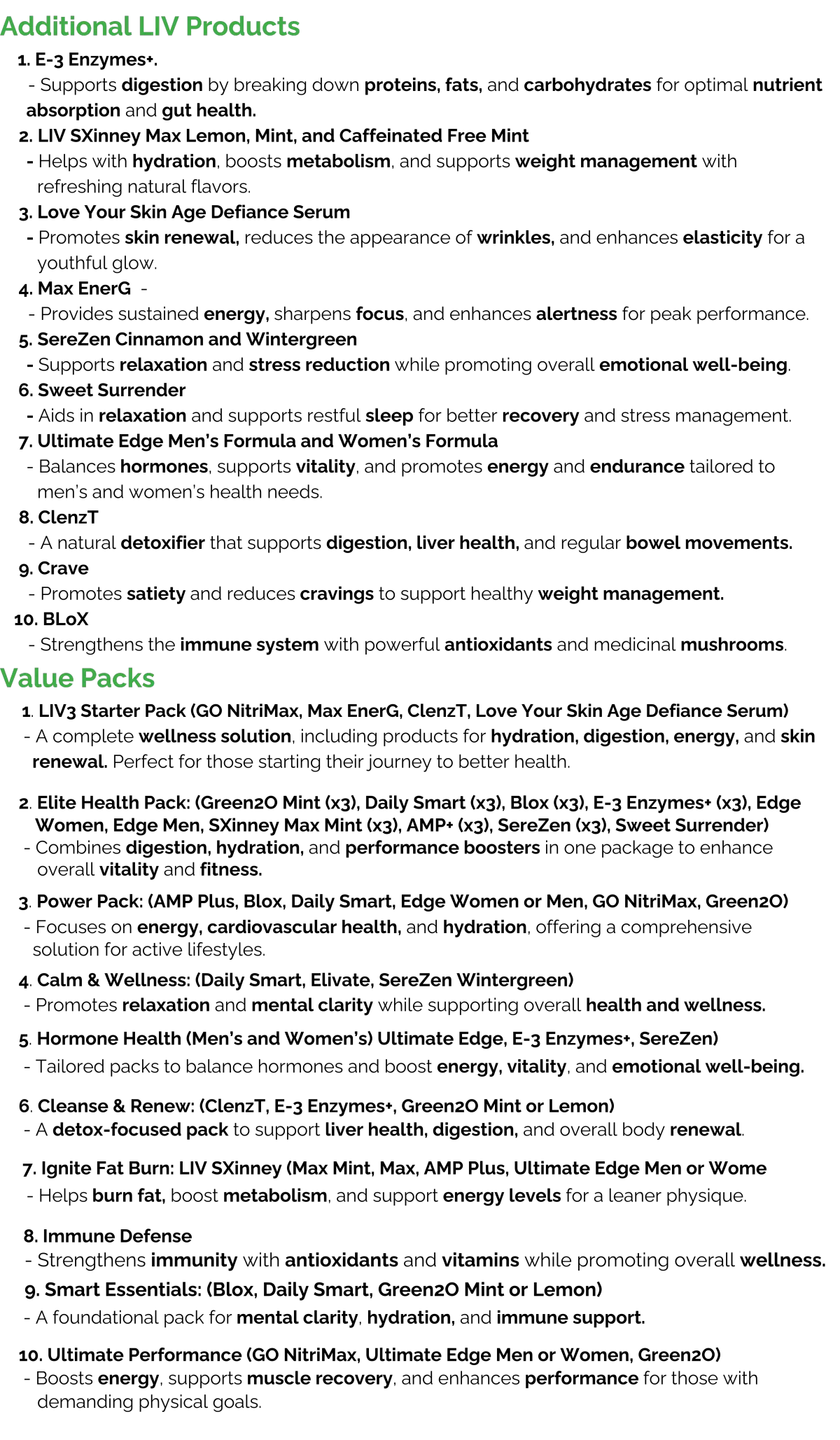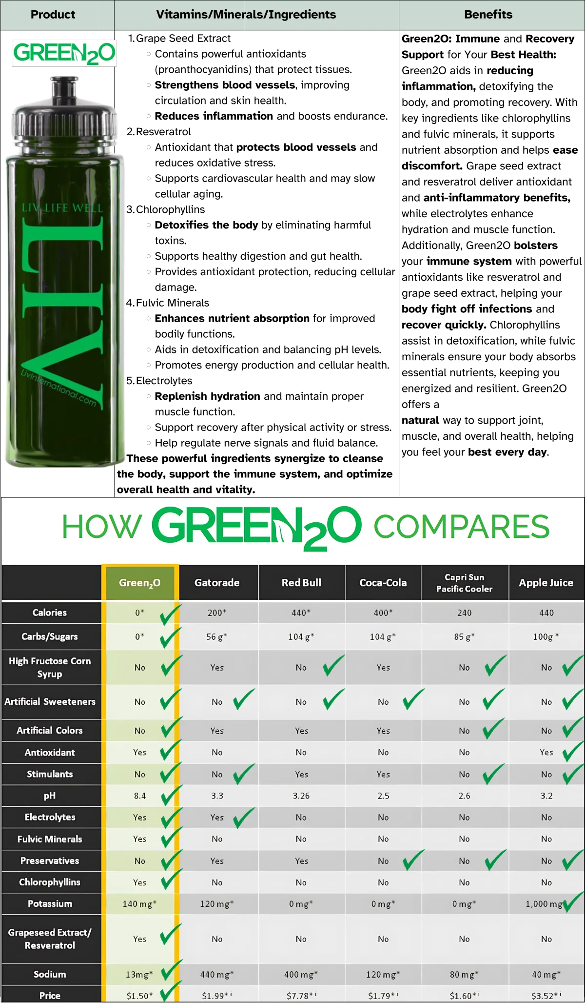 LIV Green2o is packed with essential nutrients to cleanse your system, support digestion, and keep you energized. A delicious way to stay refreshed and revitalized every day!